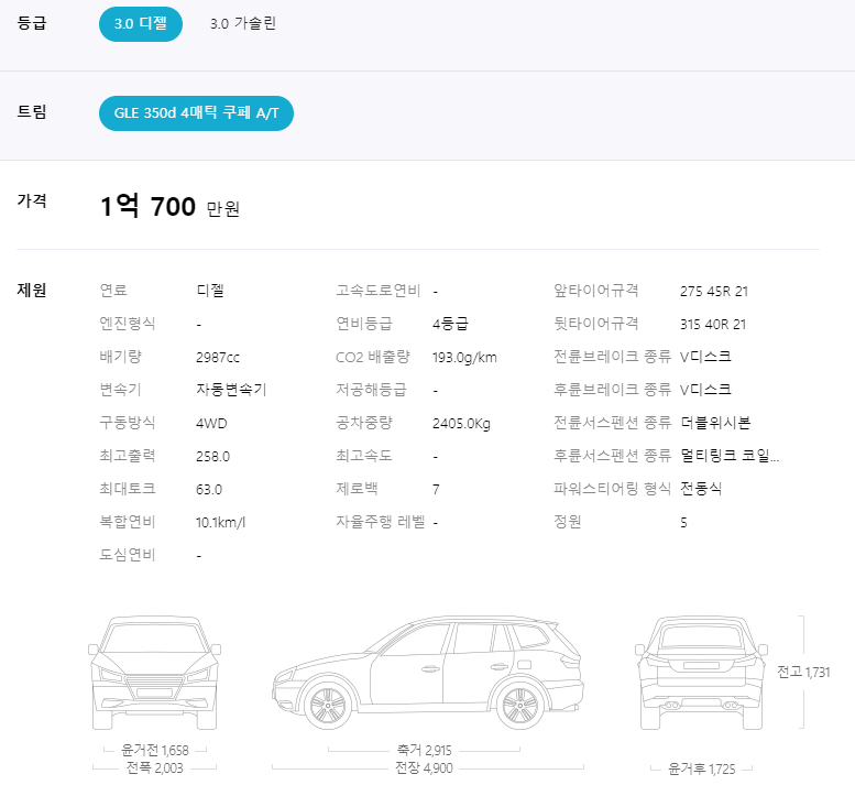 GLE 쿠페 제원 및 옵션