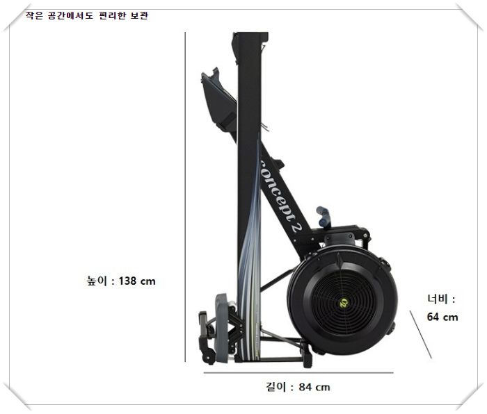 크기 : (운동시)가로 X 너비 = 244cm X 61cm, (수납시) 가로 X 너비 = 84cm X 64cm