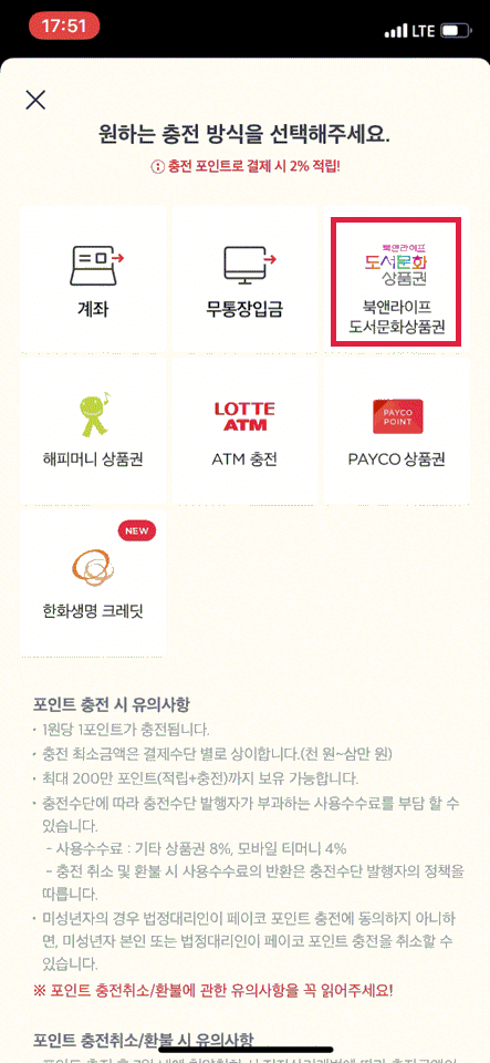 페이코에서 포인트 충전(북앤라이프 계정으로 충전)