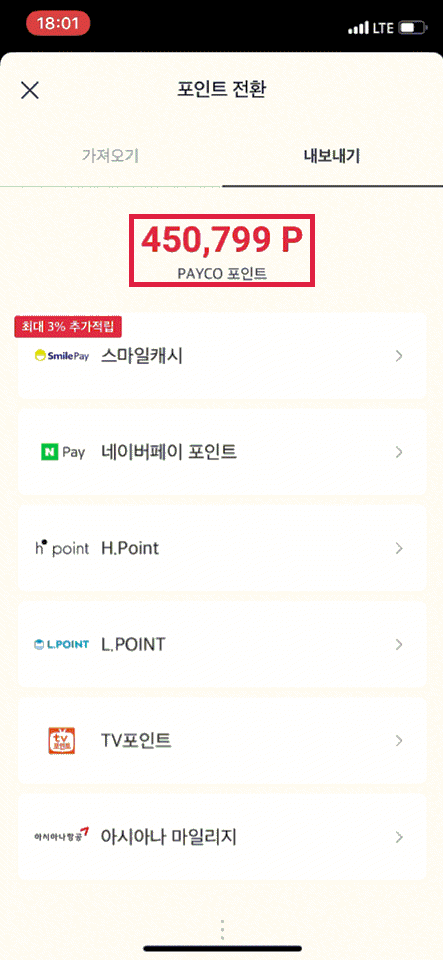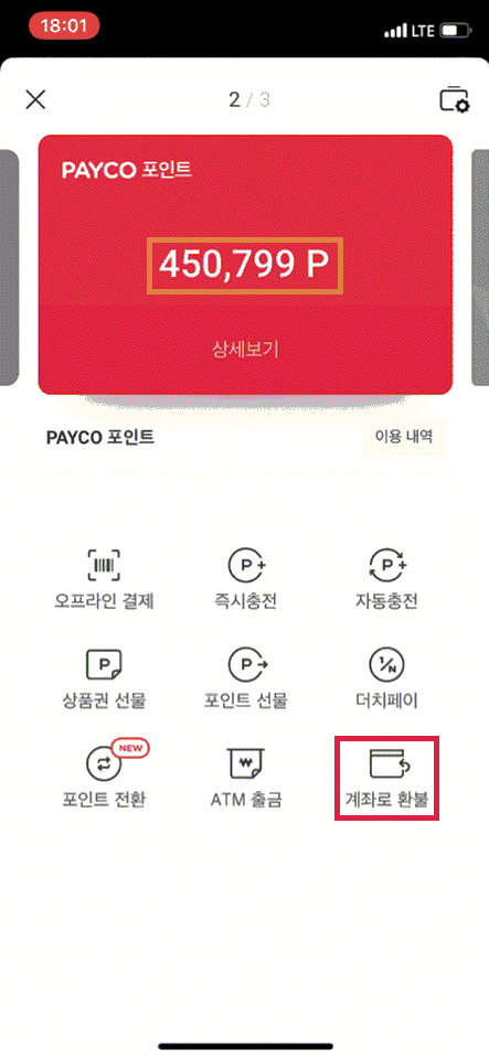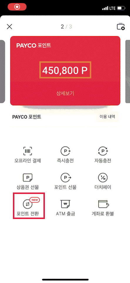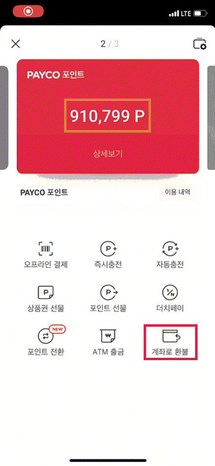 남은 페이코 포인트 450,800P 한번 더(포인트선물→계좌로환불) 수행