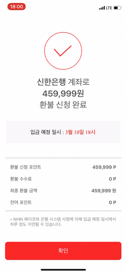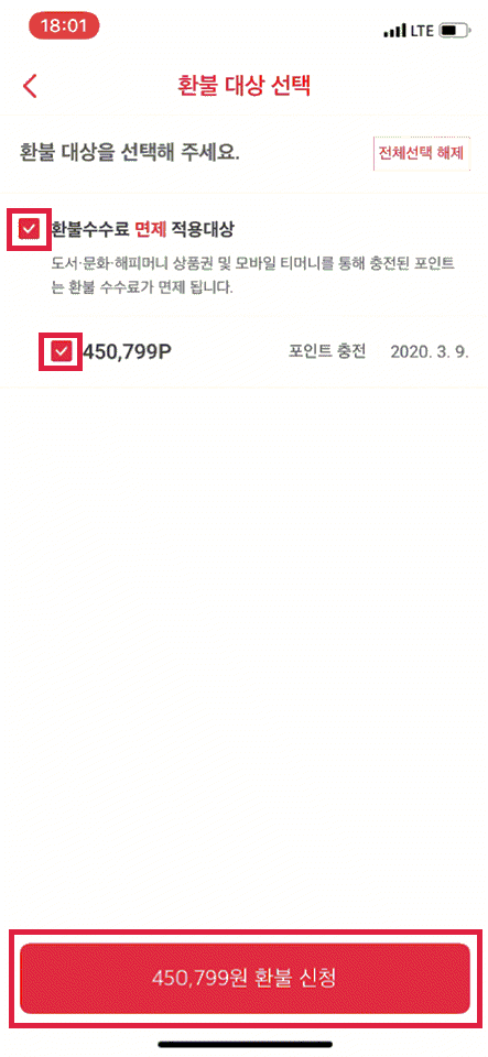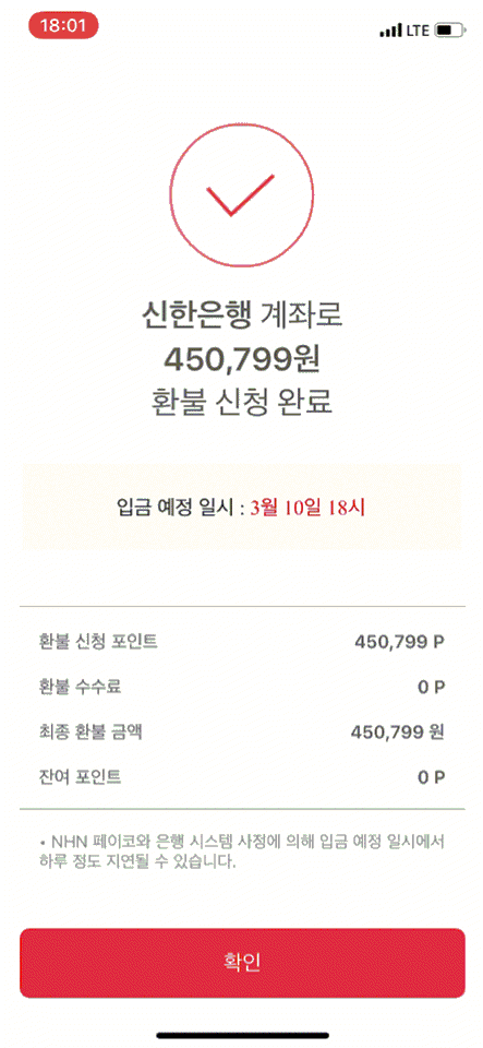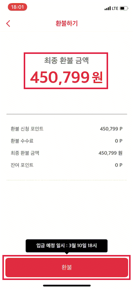 450,799P 계좌로 환불