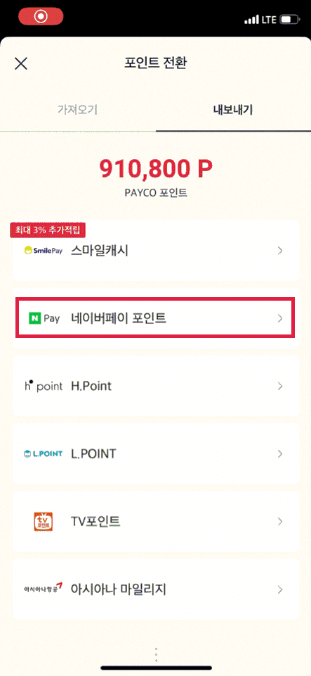페이코에서 포인트 전환하기(네이버 포인트)