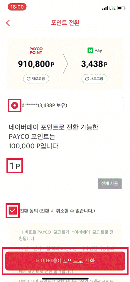 ④ 페이코에서 포인트 전환하기(네이버 포인트)