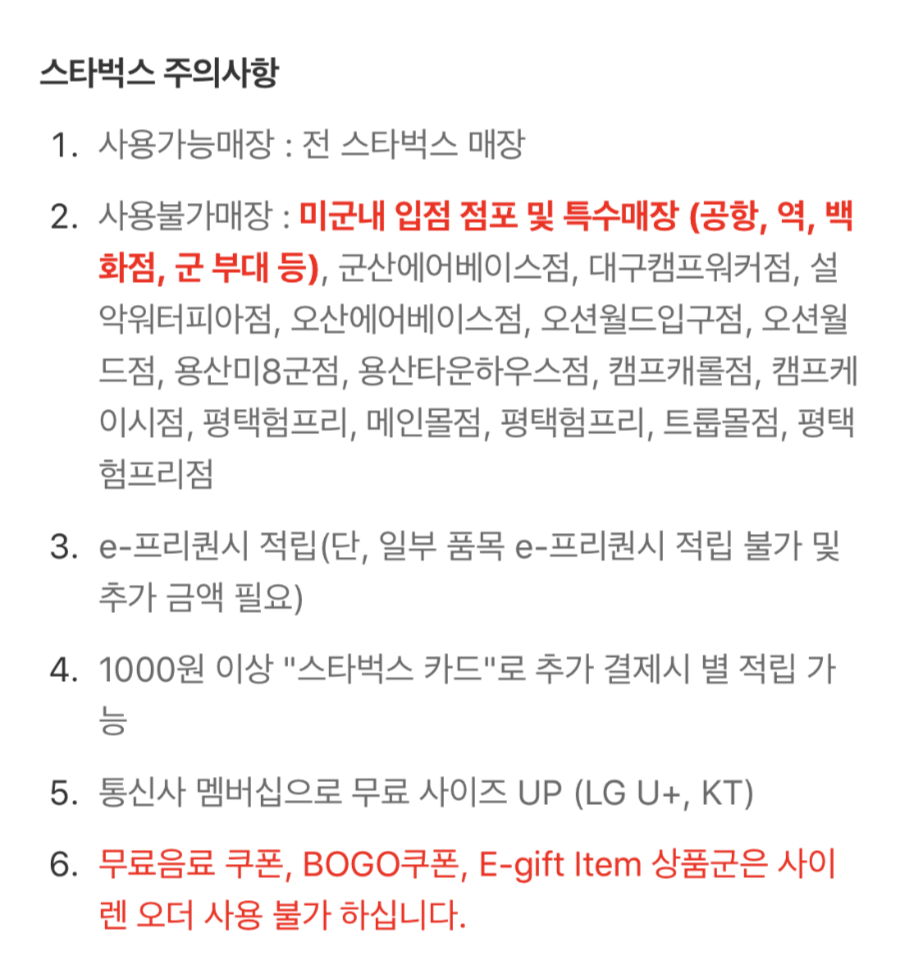 스타벅스 기프티콘 구입 참고 및 유의사항