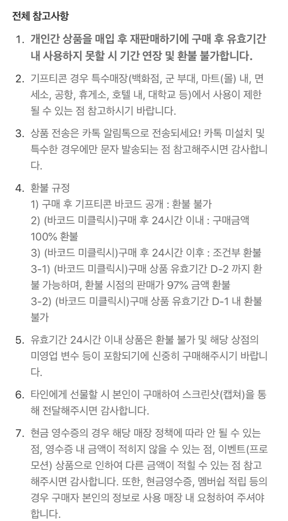 기프티스타의 장단점이 존재하고 판매자에게 조금 불리한 시스템이다 보니, 개인 간의 거래가 편하다고 생각되는 판매자분들은 중고거래 사이트를 활용하는 게 좀 더 이득이라 생각됩니다.