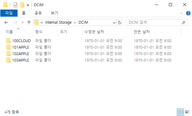케이블 연결하면 아래와 같이 내 PC 장치에 "Apple iPhone" 뜨고 탐색기를 통해 Internal Storage에 접근해서 사진 백업받으면 됩니다. PC에 백업받은 사진은 적절히 다른 매체(USB 저장장치 등)로 옮겨서 관리해주면 됩니다.