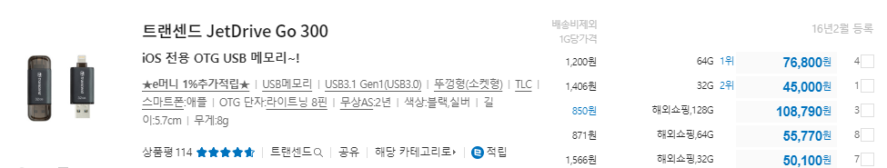 쉽게 말해 안드로이드 외장 디스크 버전이라고 이해하면 됩니다. 대략 가격은 아래와 같이 형성되어있습니다.