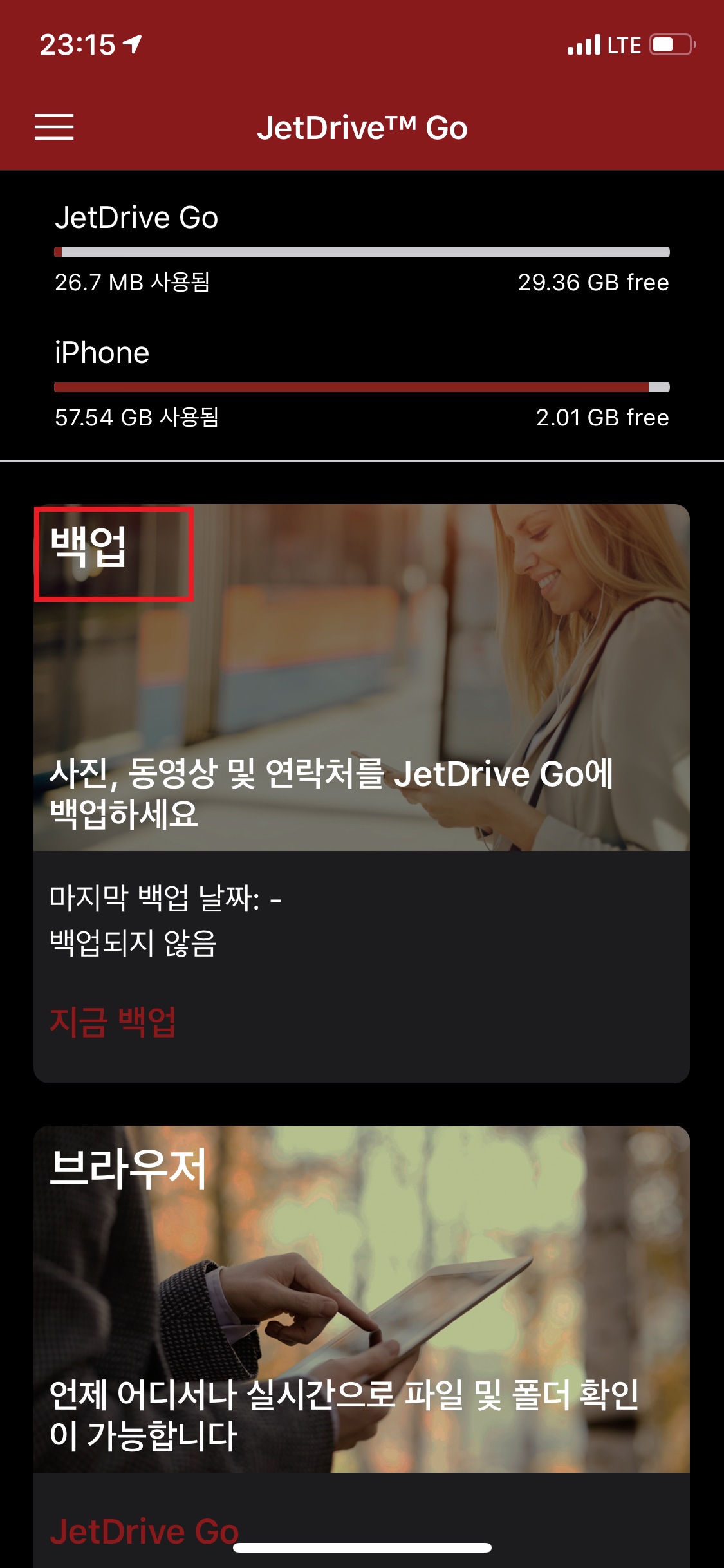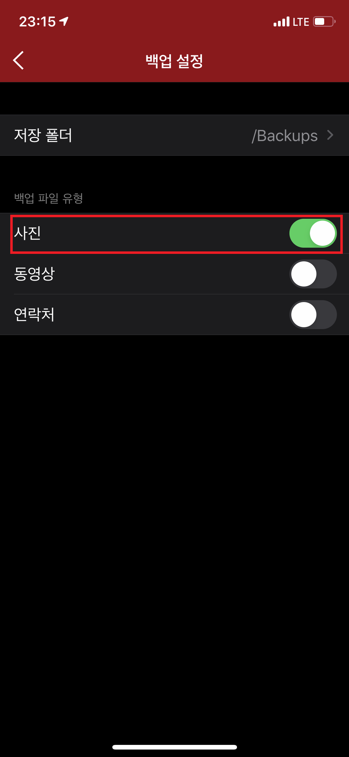 JetDrive Go 앱 실행 > 백업 > 백업 파일 유형 "사진" 켬