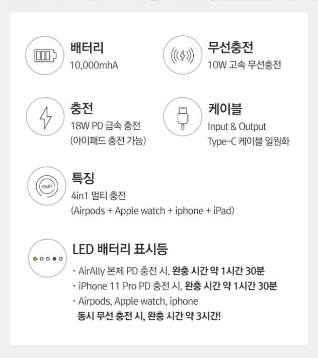 | 출장 및 외근으로 인해 구매 | - 선 없이 충전 할 수 있음 다수의 케이블 필요없으며, 짐이 줄어듬 |
