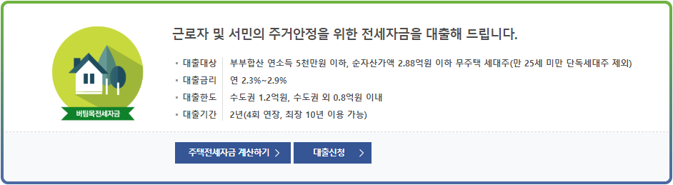 국민주택 기금 전세자금 대출 상품