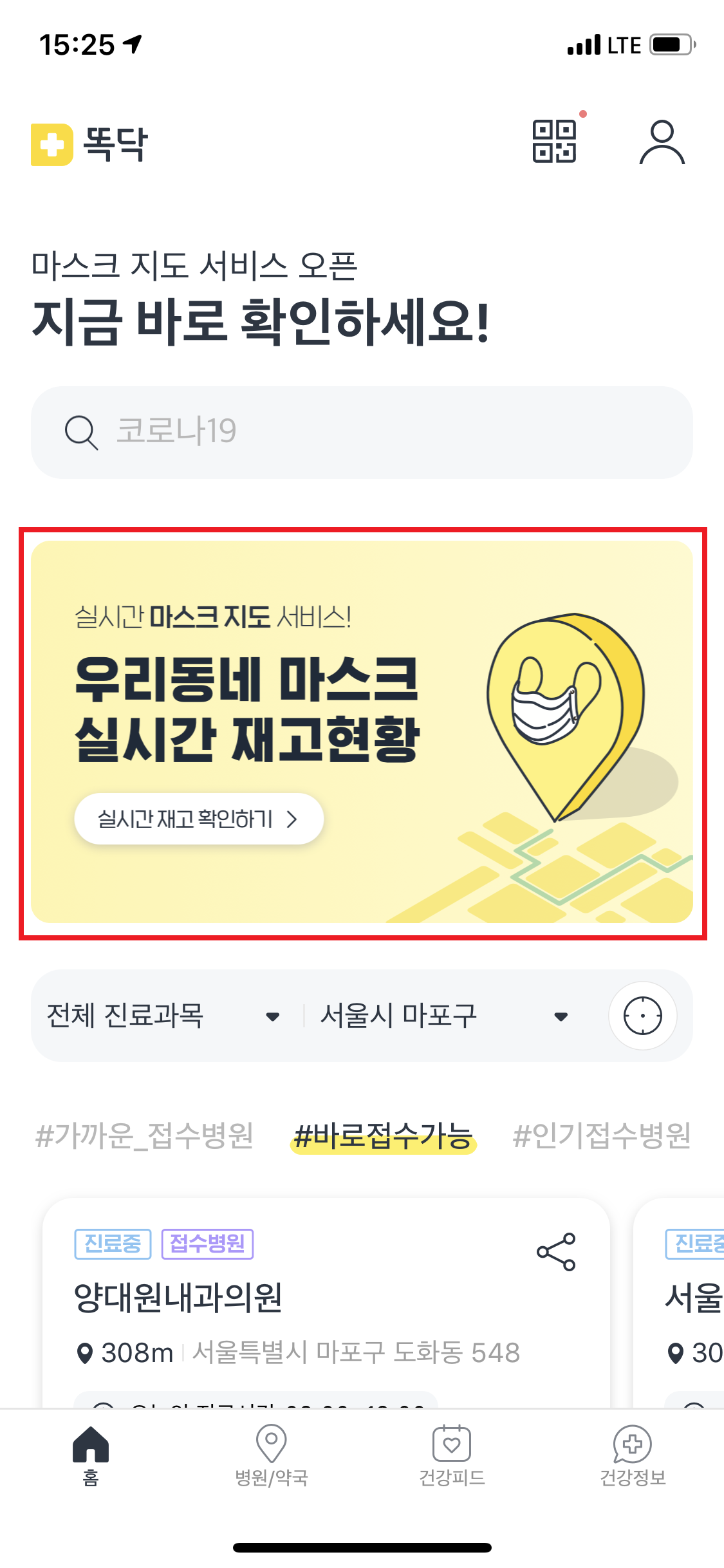병원 예약 및 약국 찾는 앱으로 기존에 존재한 앱으로 마스크 재고 서비스는 PC&모바일 모두 가능합니다.