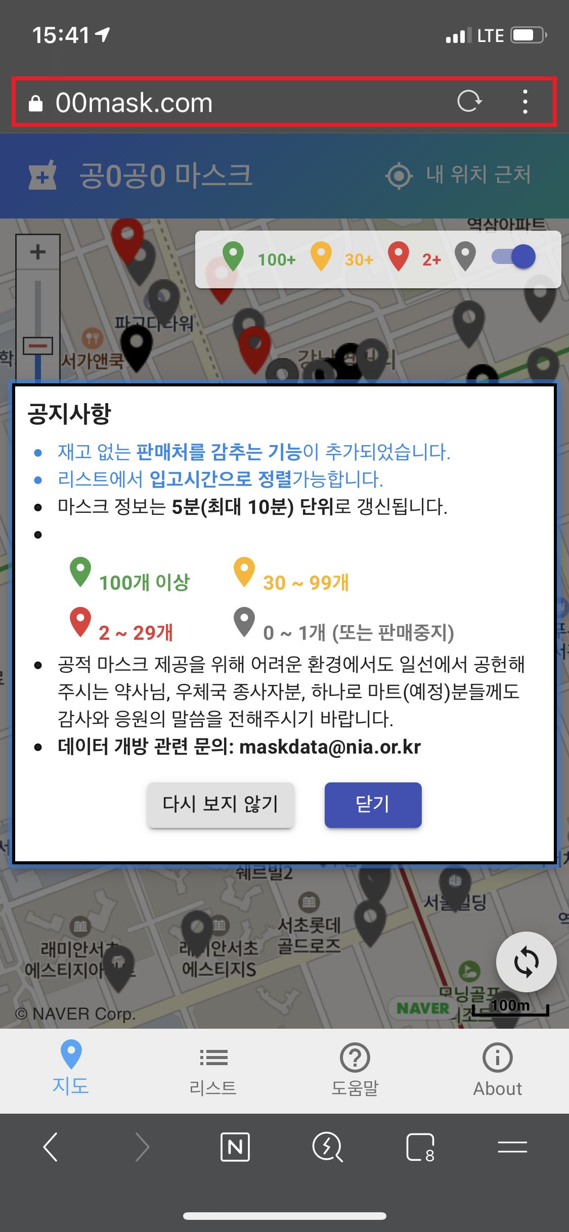 모바일 환경으로 약국 마스크 재고를 찾는 앱으로는 00mask를 추천합니다. 지명 검색 및 검색 결과를 상당히 쉽고 편리하게 보여주는 장점이 있네요. 이외 앱들도 유지및 관리가 잘되고 있으니 접속하셔서 나에게 편리한 앱을 찾아 사용하시기 바랍니다.