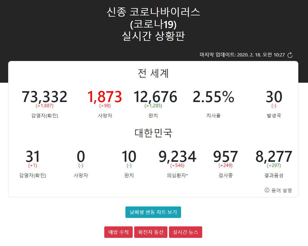 | 코로나바이러스 위험지역(코로나있다) 확인 (0) | 2020.02.21 |