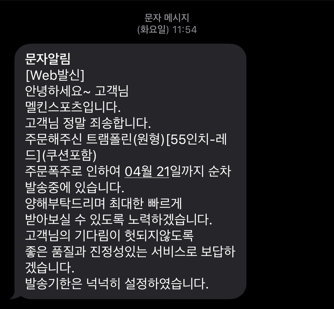 하지만, 주문 폭주로 인한 배송 지연 이슈 발생되었습니다. 인기에는 기다림이 필요한듯 체념하고 다음주에 받겠군 생각하였습니다.