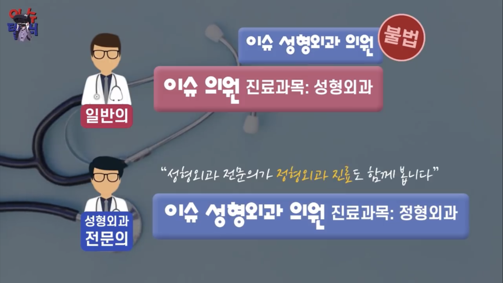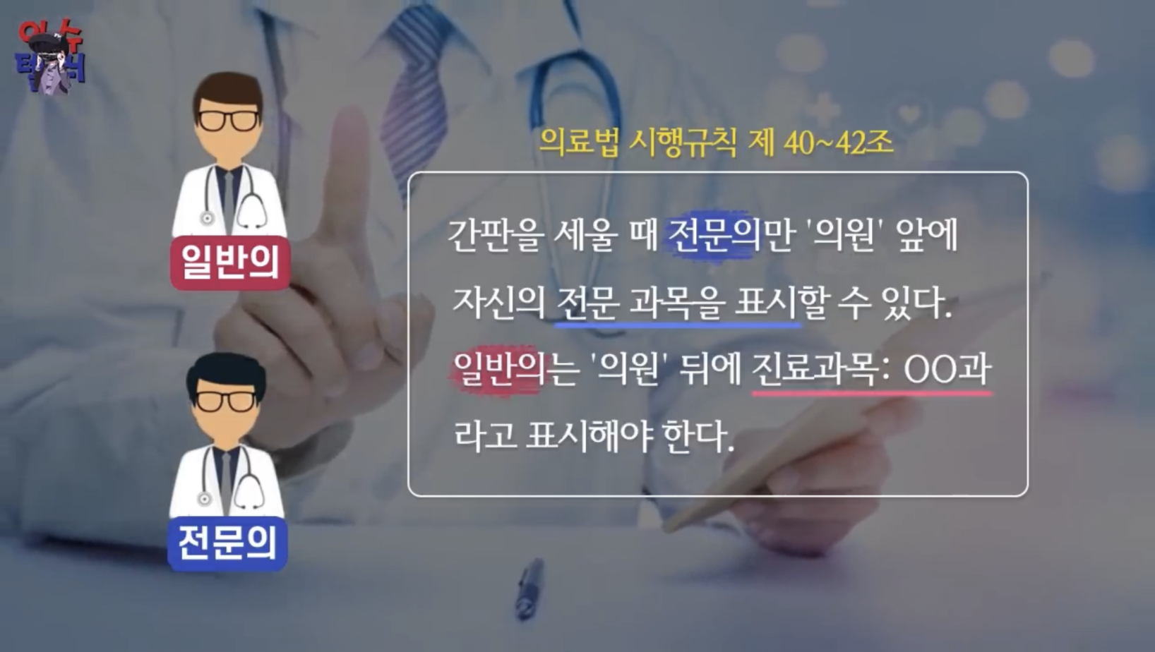 이슈□의원 사이에 전문 과목 표시 내용에 따라 전문의, 일반의 의원 간판 이름이 달라집니다.