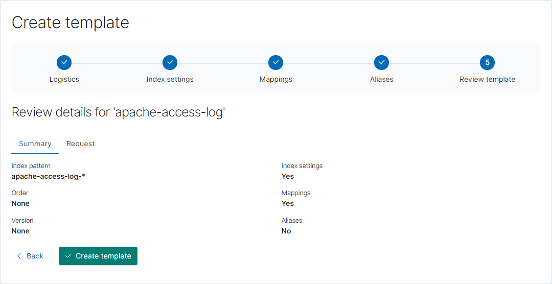 1) 좌측 하단 톱니바퀴 > Index Management > Index Templates > Create a template